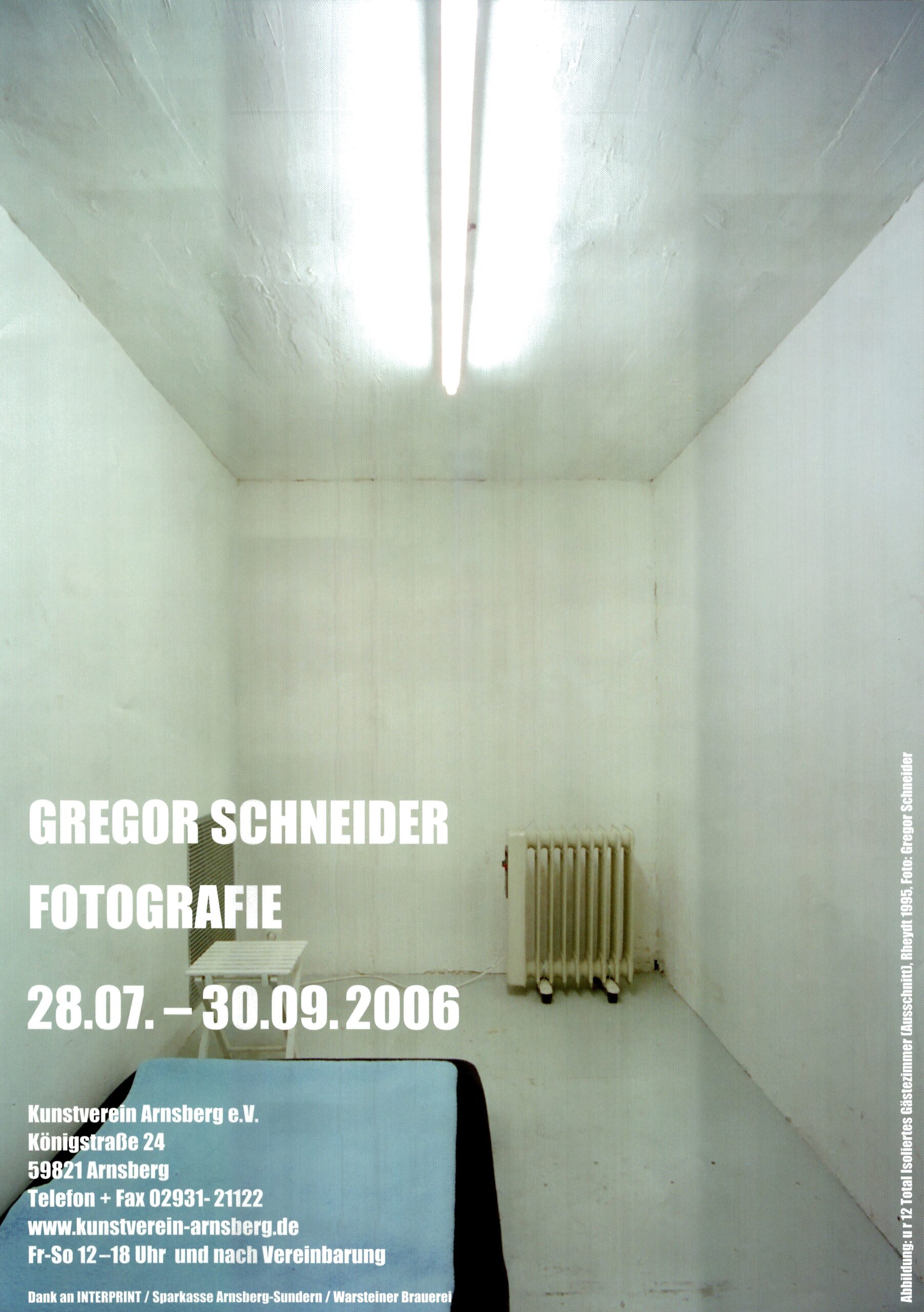 Die Fotografien des Künstlers, die der Kunstverein Arnsberg erstmals als Einzelpräsentation zeigt, sind als eigenständige Ausdrucksmittel des Künstlers zu betrachten. Die Ausstellung wurde eigens für die Räume des Kunstverein konzipiert und umfasst mehr als 100 Aufnahmen, sie zeigen exemplarisch Schneiders Werkentwicklung von 1985 bis 2006 und fünf Installationen des Künstlers. Ihre intensive Formensprache und Farbigkeit entziehen sich einer einfachen Einordnung und reflektieren intensiv die Gregor Schneiders Installationen und Skulpturen beherrschende Raumwahrnehmung. Fast alle Arbeiten lassen sich auf das „Haus u r” in Rheydt beziehen, das der Künstler bewohnt und ständig verändert, so dass es als sein Lebensprojekt betrachtet werden kann. Objekte des Alltags stehen dort in einem durchaus üblichen Verhältnis zu den baulichen Verhältnissen des einfachen Hauses.