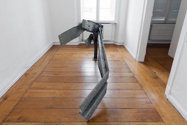 »VERFORMUNG (Das Glückliche Objekt)« besteht aus einer skulptural verformten Leitplanke, welche aus ihrer Verankerung gerissen wurde und die Knecht dem Alltag entnommen und von der Autobahn in den Ausstellungsraum überführt hat. Das Objekt – durch einen Unfall verformt, bei dem es Todesfälle verhindern konnte – hat seine Aufgabe erfüllt, seiner Bestimmung entsprochen und getan, wofür es geschaffen wurde: ein glückliches Objekt.
